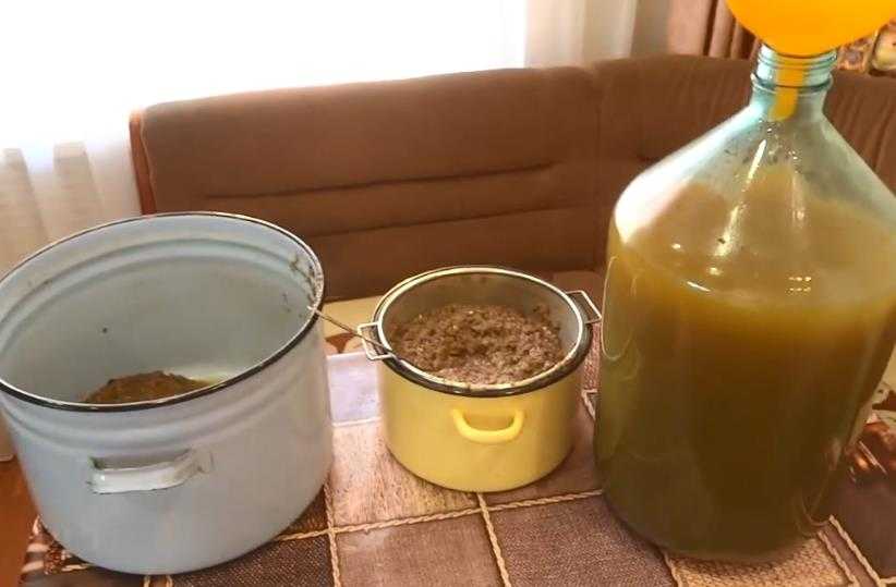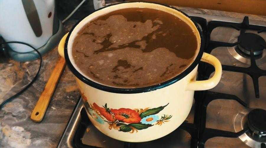 - Дать массе закипеть под крышкой, проварить в течение 40 минут. Процедить полученное сусло через металлическое сито, отжав чистыми руками дробину.