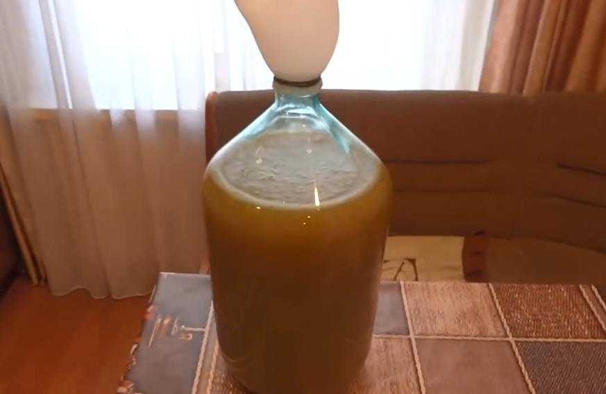 - Дрожжи залить теплой водой с чайной ложкой сахара, дать постоять в тепле 1 час. Вылить их в бродильную емкость, добавить остывшее до комнатной температуры сусло.