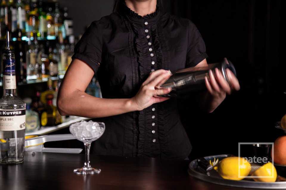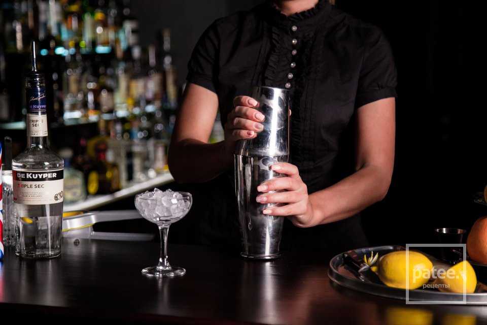 - Для начала необходимо поставить бокал в морозильную камеру, чтобы охладился. Затем нужно поместить в шейкер все ингредиенты (за исключением цитрусовой дольки, которую требуется оставить для украшения), тщательно встряхнуть содержимое.