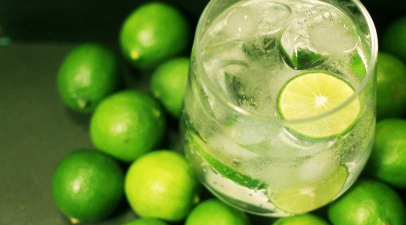 - Бросаем порезанный лайм в Коллинз и забрасываем в бокал листья мяты;