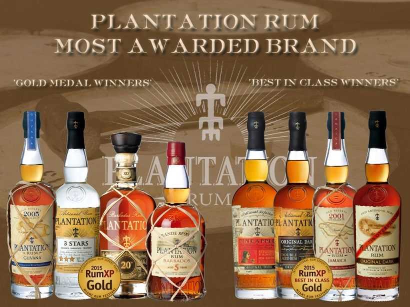 Золотые награды, полученные ромом Plantation в конкурсе Rum XP Competition: