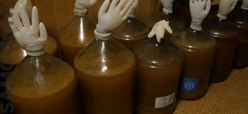 Смешать дрожжевую кваску с оком и оставить брагу в тепле на 6-7 дней. Готовность браги легче будет определить, если использовать емкость с гидрозатвором или стеклянную банку с натянутой на нее резиновой перчаткой. При брожении перчатка надуется и чтобы она не слетела с банки, нужно будет в одном из пальцев сделать небольшой прокол иголкой. Когда брага готова, перчатка сдувается и на дне напитка образуется дрожжевой осадок.
