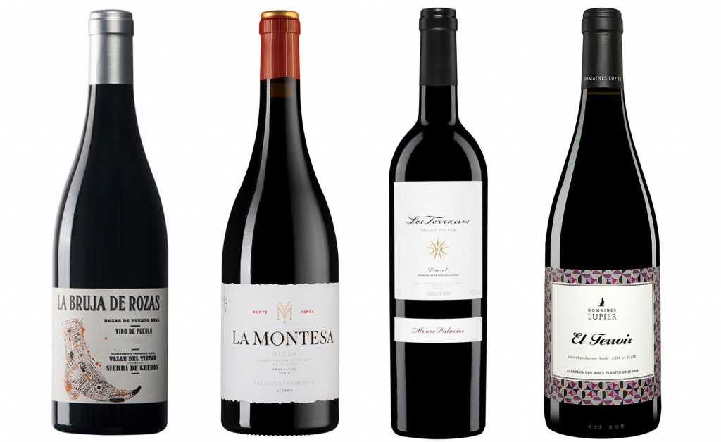 Слева направо: Comando G La Bruja de Rozas DO Vinos de Madrid 2018; Bodegas Palacios Remondo La Montesa DOC Rioja 2017; Alvaro Palacios Les Terrasses Velles Vinyes DOQ Priorat 2018; Domaines Lupier El Terroir 2017