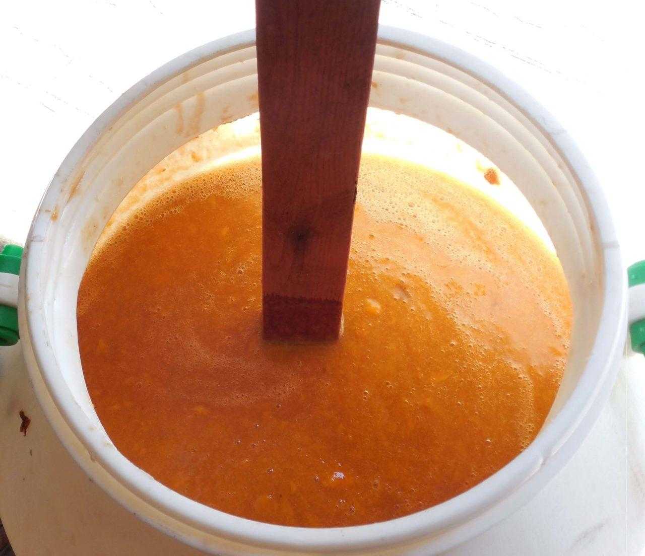 Самые простые рецепты домашних вин основаны на применении только сока. А кто пробовал добывать сок из абрикосов, знает, что фрукт этот очень волокнистый, выжать его вручную весьма трудно, да и соковыжималки дают не прозрачный нектар, а некие отжимки, больше похожие на томат. Мы попробуем справиться с проблемой так: для начала дадим забродить мятым плодам вместе со жмыхом, а уж затем, когда они размягчатся – надавим из них сусла (технология подбраживания — прим. ред.).
