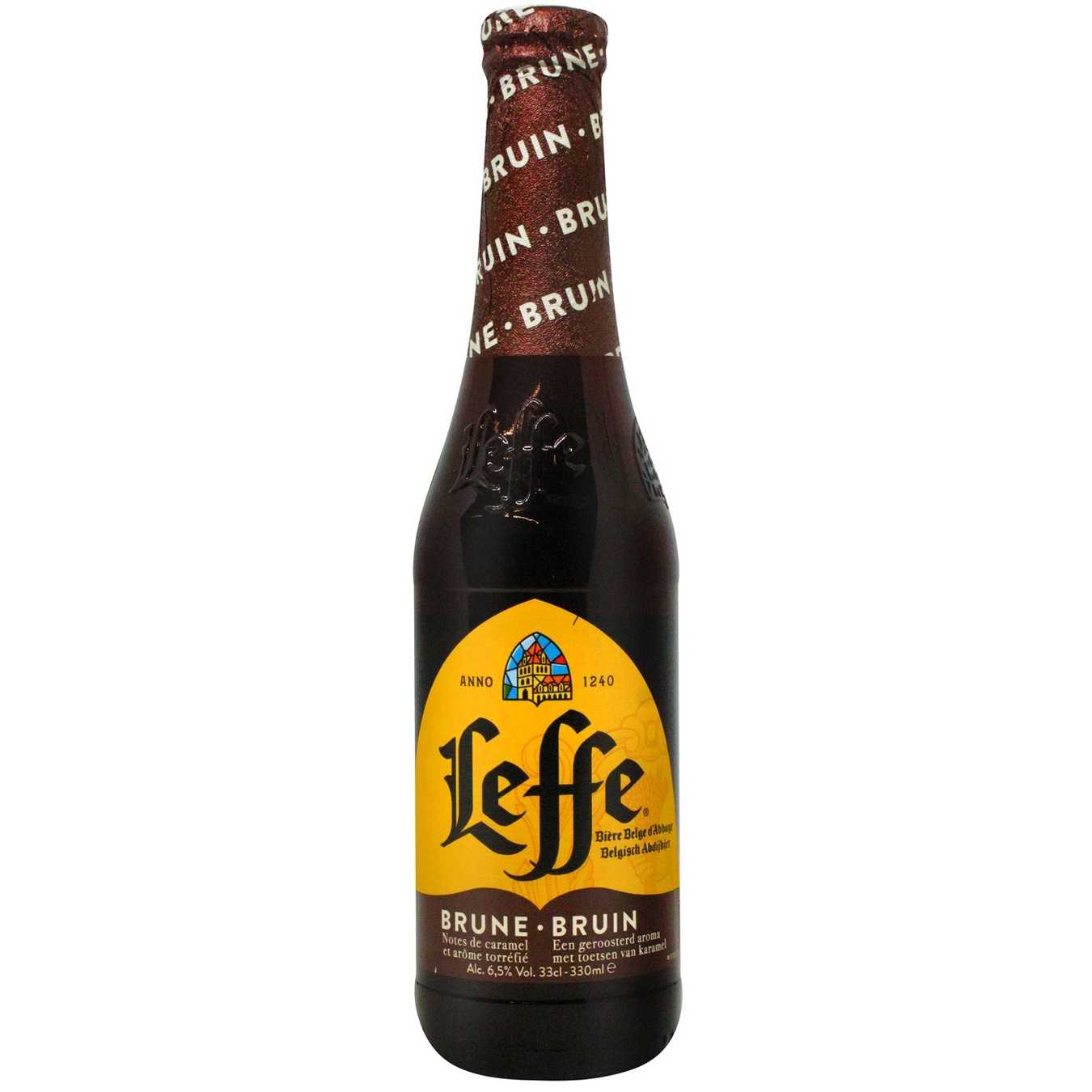 В темном пастеризованном эле 6,5% оборотов крепости. Leffe Brune изготавливается по методу верхового брожения. У него глубокий темно-коричневый цвет и насыщенный аромат, в котором переплелись нотки пряностей, солода, кофе, шоколада и фруктов. Вкус сбалансированный сливочный, чуть сладковатый. Изящная горчинка и карамельная нотка отыгрываются самым лучшим образом.